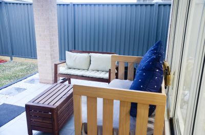 ^ Covered outdoor entertaining area perfect for BBQs and gatherings.