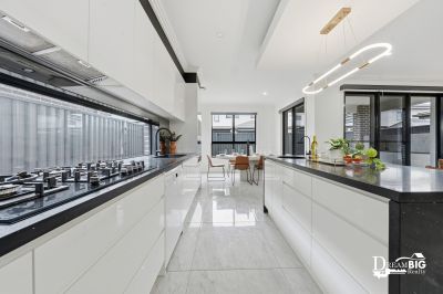 # Gourmet kitchen featuring stone benchtops, premium stainless-steel appliances, gas cooktop, ample cabinetry & Walk-in-Pantry