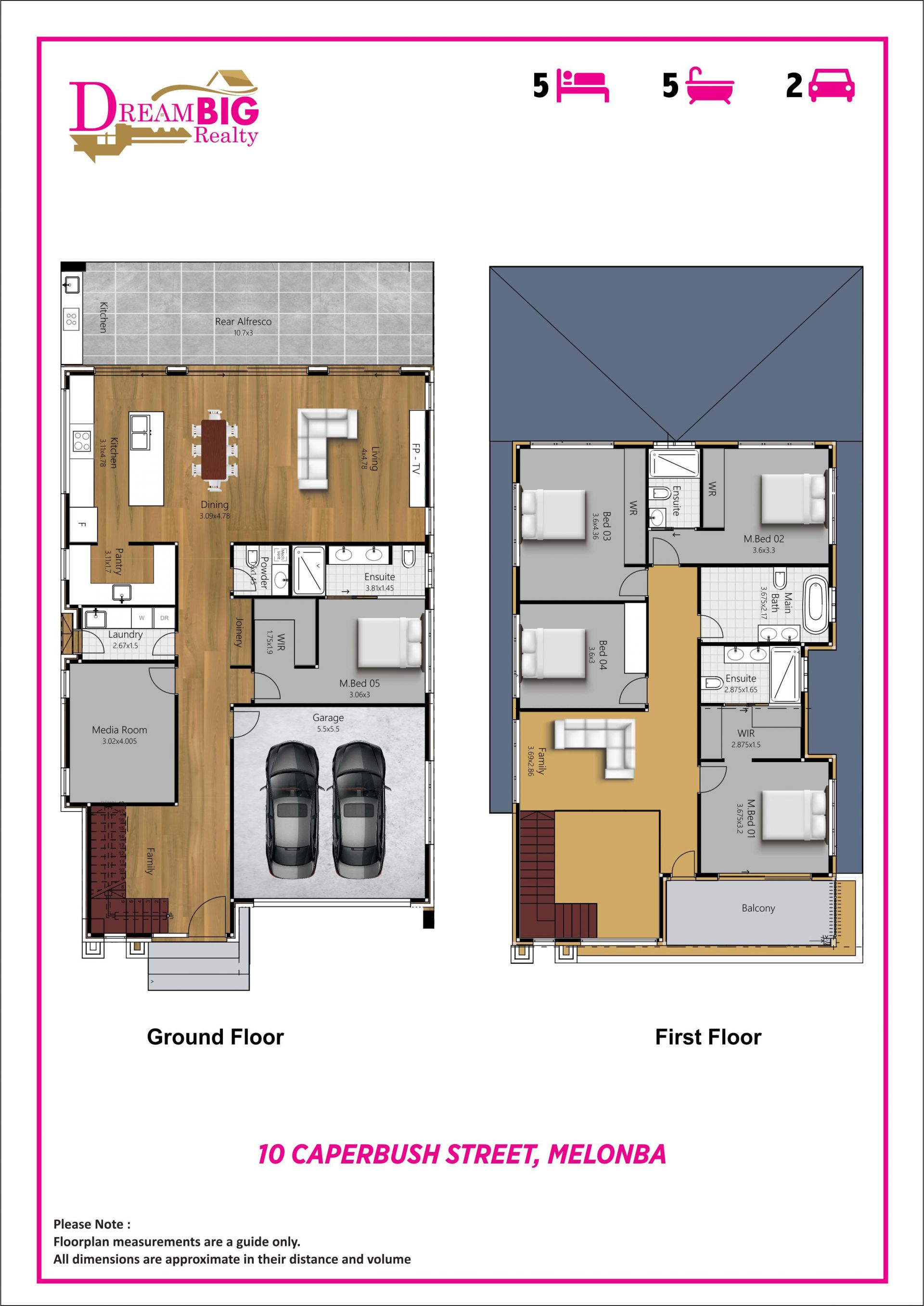 * 5 generous bedrooms | 4.5 designer bathrooms | Media room | Double garage